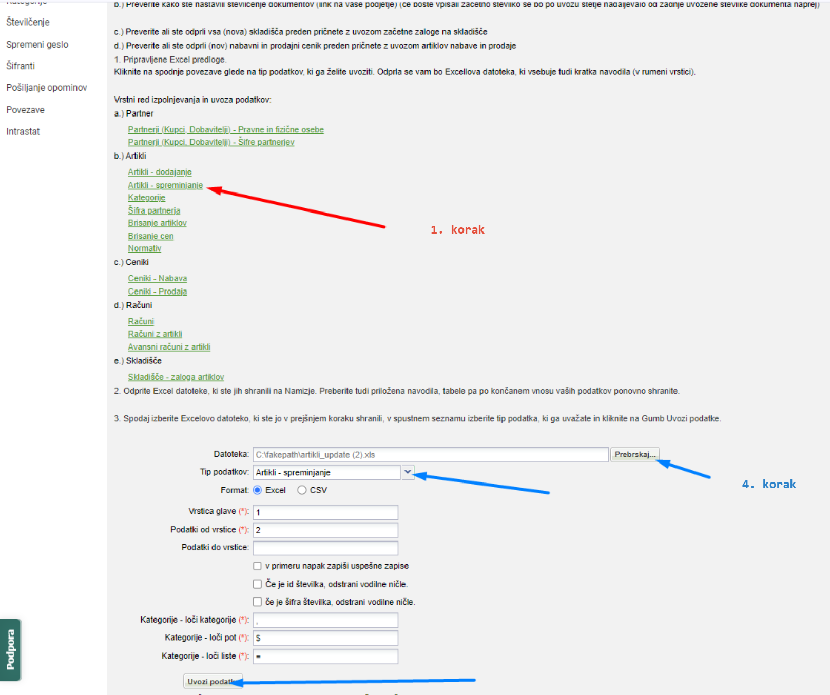 - Uvoz podatkov