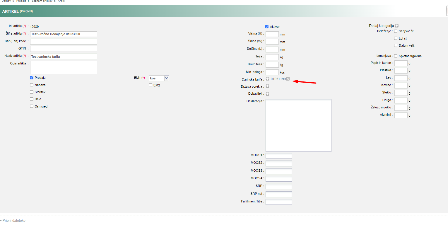 - 1/2 prikaz artikla, da se prepričamo da je dodalo pravilno
