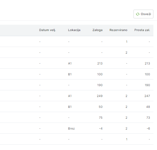 - Prosta zaloga, koliko artiklov je še na voljo za nadaljno prodajo