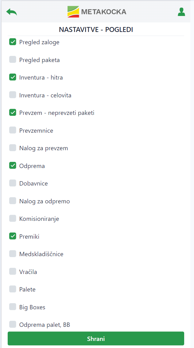 Po zaključenem prevzemu kliknemo na gumb shrani in zaloga bo vidna v pregledu Skladišča.