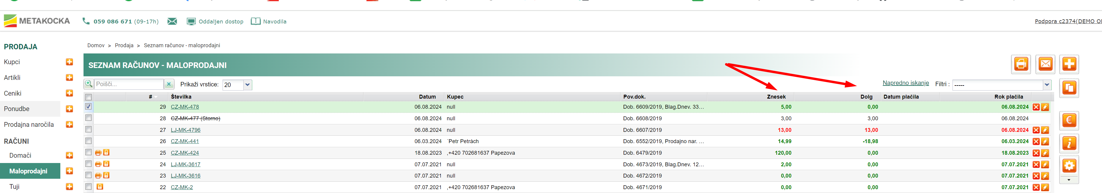 2) Maloprodajni račun