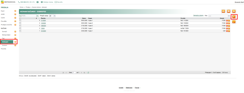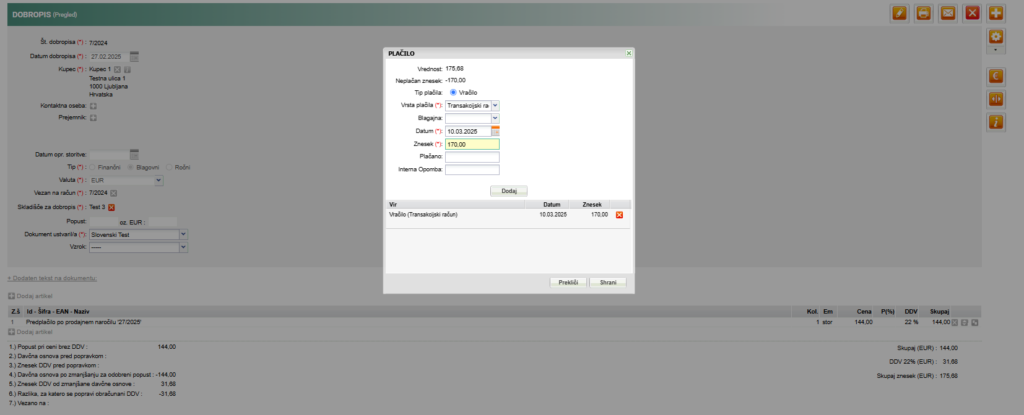 1. Dobropis ima sedaj možnost urejanja vračil: Vračila se zabeležijo na računu, in jih je tam tudi mogoče videti / slediti.