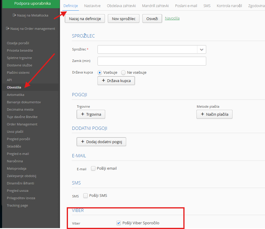 V kolikor želite v vaš poslovni proces, vključiti obveščanje kupcev preko Viber sporočil, je potrebno registrirati Sender ID. npr. NAJSHOP. Za registracijo senderja izpolnite forme na POVEZAVI, nam jih vrnite, da v vašem imenu registriramo Sender ID in dopolnimo nastavitve.