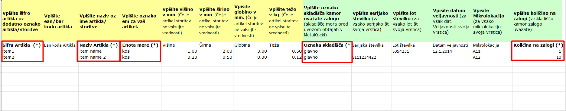 Datoteka, v katero vpišete podatke za uvoz, je priložena na koncu navodil.
