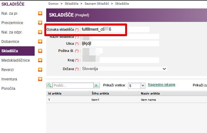 Pri oznakah skladišča bodite pozorni, da se popolnoma ujemajo z oznakami skladišča vaše stranke.
