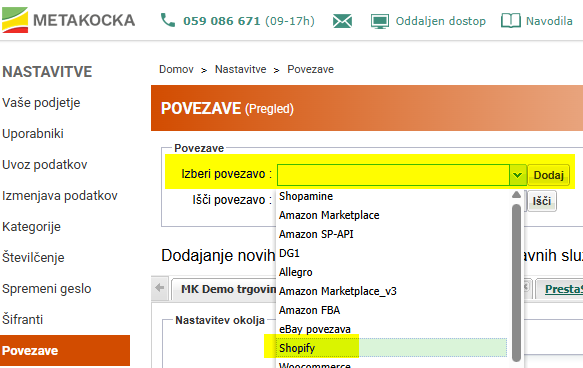 * Obstoječe/delujoče povezave s spletnimi trgovinami še naprej delujejo nemoteno. Spodnja navodila so samo za nove povezave s spletnimi trgovinami Shopify.